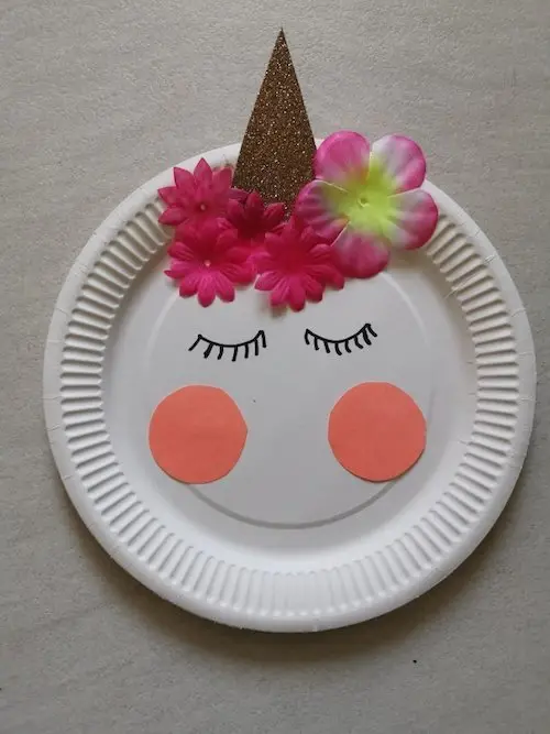 Toddlers will love turning a plain paper plate into a magical unicorn. Begin by letting them paint the plate in any color they like. Once it is dry, add pink cheeks, a horn, and whatever details you want to make it look extra cute.