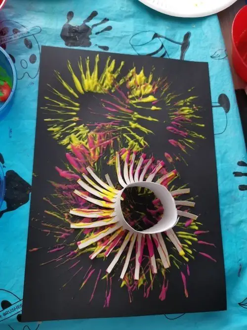 This craft is perfect for Bonfire Night or anytime your toddler wants to make bright, colorful art. Take an empty toilet roll and cut slits about halfway up to create fringes. Spread the strips out a little so they look like a firework burst.