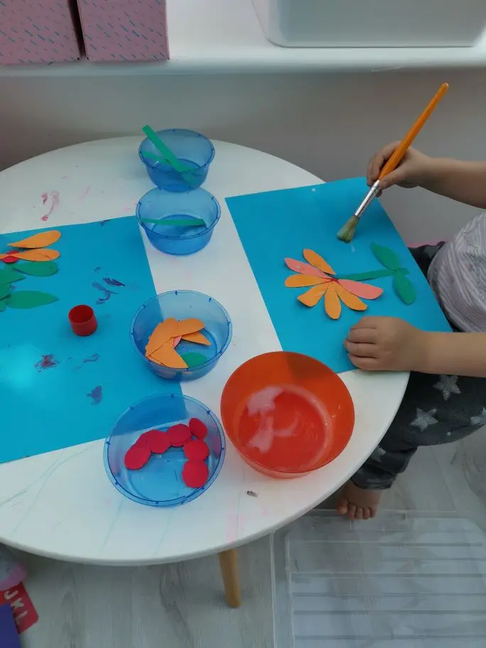 This is a low-prep craft that toddlers can do mostly on their own. Cut out flower parts ahead of time—green stems and leaves, colorful petals, and small round centers. Give your toddler some child-safe glue and let them piece everything together to make pretty flowers on a sheet of card.