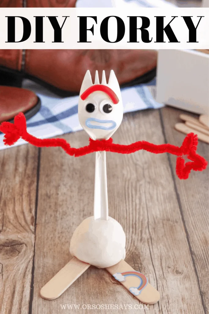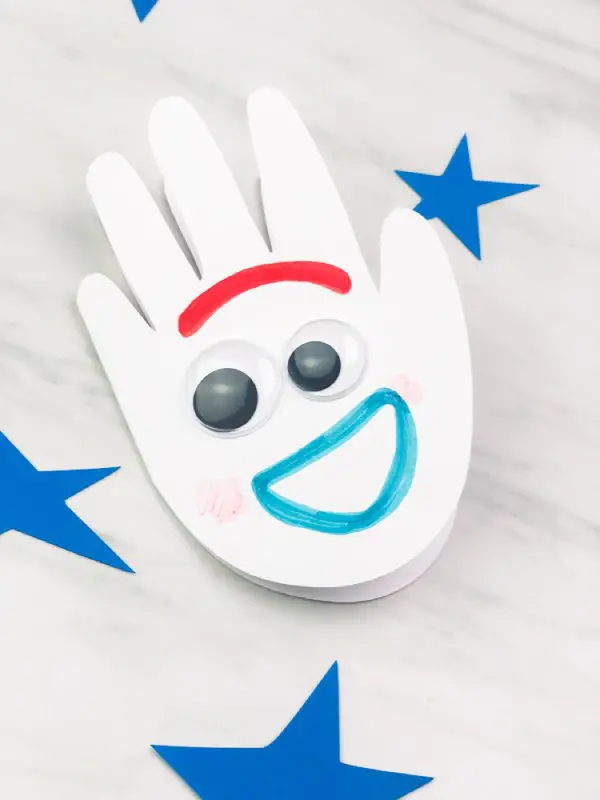 If your child has watched Toy Story 4, they probably loved Forky. You can recreate him at home in a couple of ways. Use a plastic fork and some pipe cleaners to make a version that looks just like the movie, or try a handprint craft version of Forky for an easier toddler-friendly option.