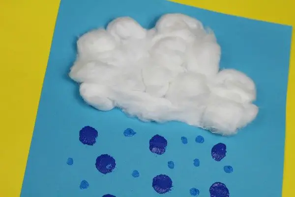 Turn a rainy day into something cheerful with this sweet craft. Cut out or draw a cloud shape on blue card. Then glue cotton balls onto the cloud to make it fluffy and soft. For raindrops, your toddler can either paint them on or draw them with crayons.