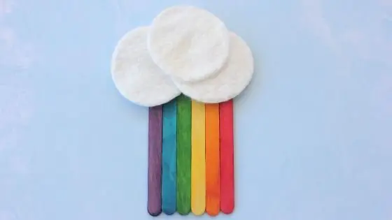 This is a bright and cheerful activity that toddlers will love. Use wooden popsicle sticks to create a rainbow shape, then let your child paint each stick in a different color. When finished, glue some cotton balls at the ends to look like fluffy clouds.