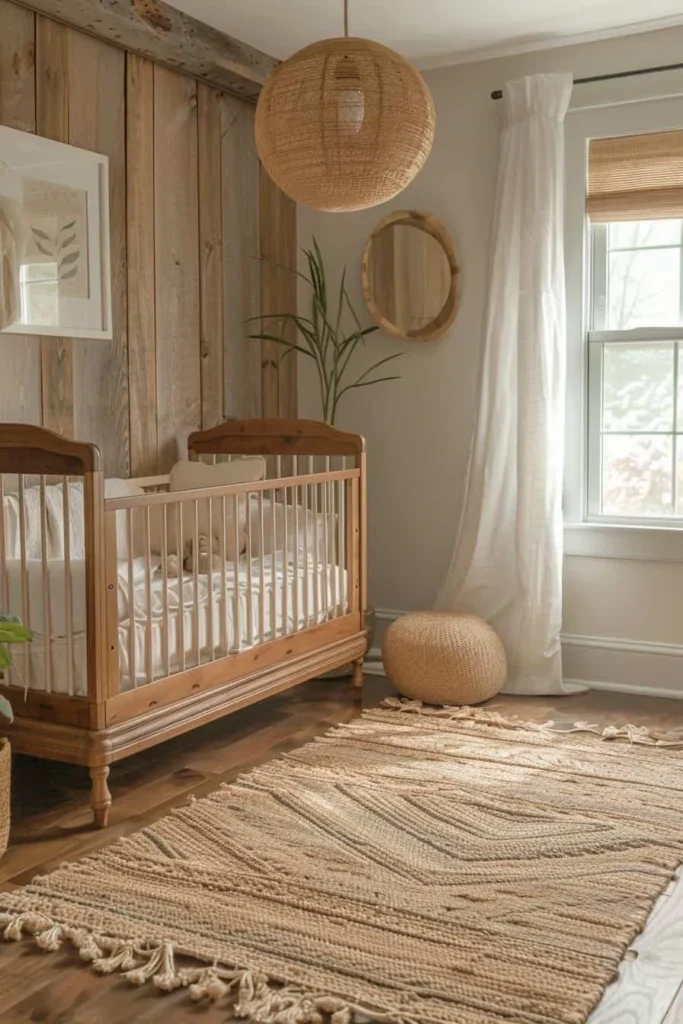 Earth-inspired tones paired with natural wood finishes bring a sense of warmth and relaxation. This look creates a nurturing environment where your baby feels surrounded by comfort, with just the right touch of nature woven into the design.