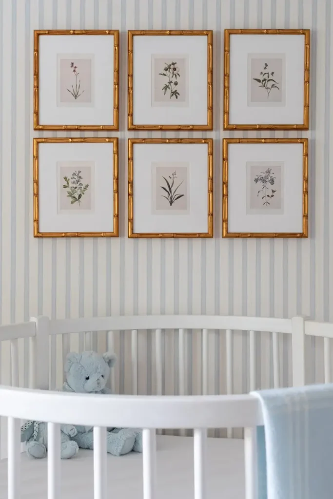Well-framed art instantly elevates a nursery. Sending prints to a professional framing service saves time and ensures your pieces arrive protected and ready to hang. A gallery wall of framed prints is a stylish way to showcase your favorite artwork while tying the room together.