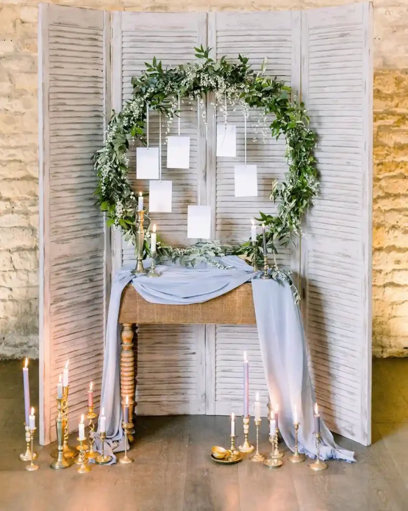 Create a cozy table with candles, soft lighting, and touches of greenery so guests can find their place while staying in theme. This simple touch adds both elegance and organization to your baby shower setup.