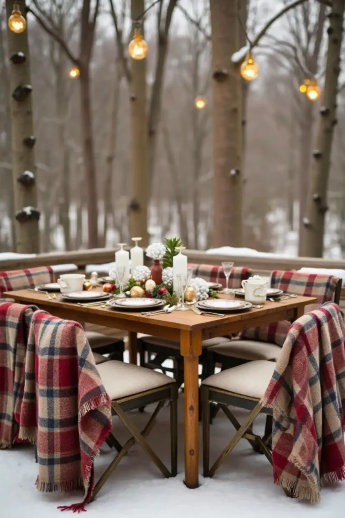 Bring warmth and texture to your space by draping knit scarves or flannel blankets over chairs and tables. Go for soft plaids or classic cable-knit designs that add comfort and style.