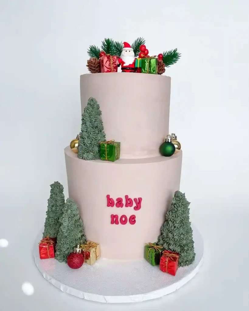 If your baby shower falls close to Christmas, add a touch of holiday spirit with a Santa Claus-inspired cake.