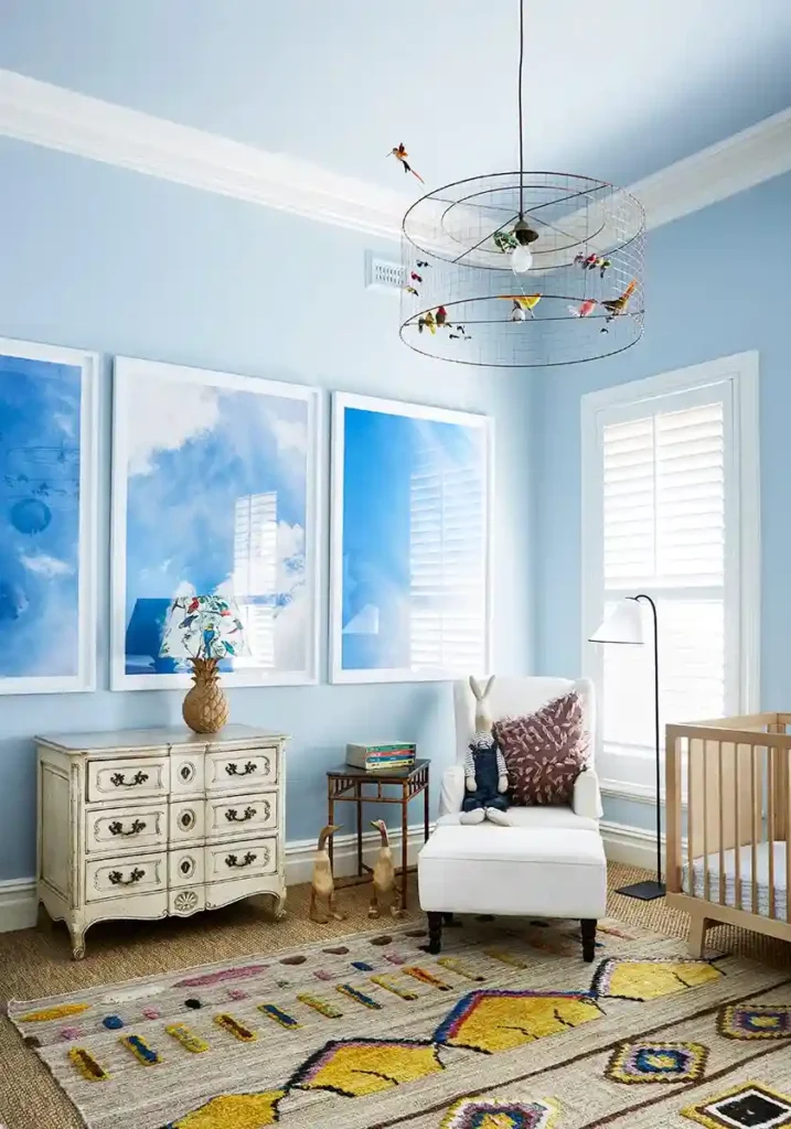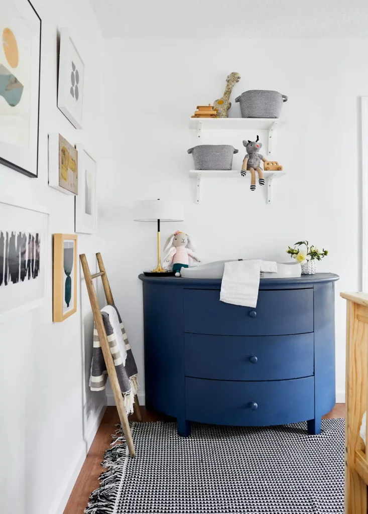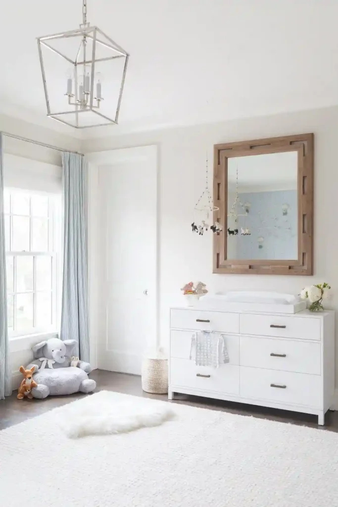 Storage is something you’ll always need, so it helps to pick pieces that can grow with your child. A classic dresser, a cozy chair, or an ottoman can serve you for years while still keeping the nursery functional. Add a playful light fixture or a whimsical touch to balance the look, and you’ll have a space that feels both stylish and long lasting.