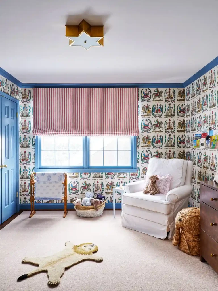 Not everything in the nursery has to be new. A classic armchair, a dresser you already own, or even a fun piece in a bold color can be repurposed for the baby’s room. Mixing timeless furniture with playful wallpaper or a colorful rug gives the space personality while making sure it will still be useful as your child grows.