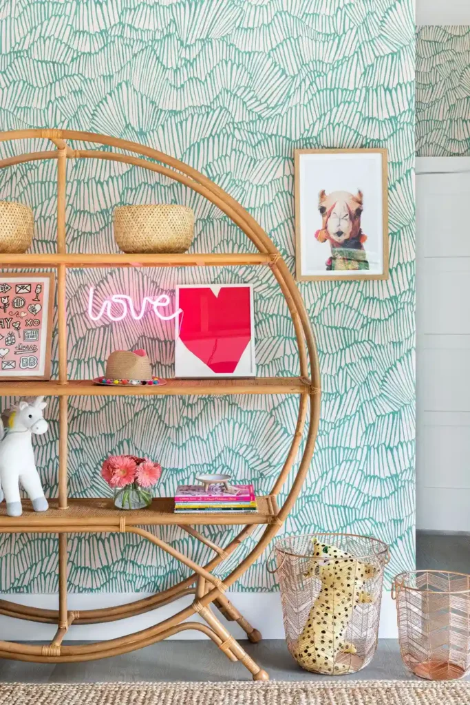 Floating shelves are great, but sometimes you just want something that doesn’t require tools or drilling. An etagere is a simple solution with plenty of shelf space for books, artwork, and storage baskets. Rounded or unique shapes can make it feel like a stylish piece of furniture while still keeping everything organized and within easy reach.
