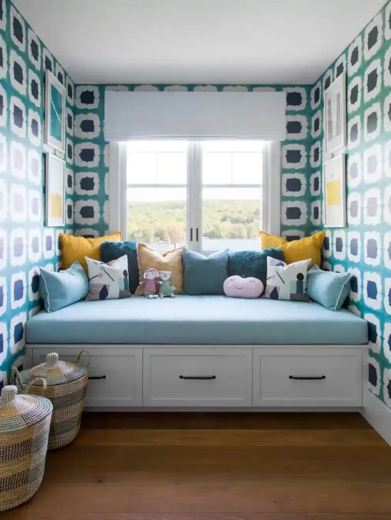 A built in reading nook is a wonderful addition for kids of any age, and it becomes even more practical with storage underneath. Drawers built right into the base give you extra room for books, toys, or blankets. It’s cozy for story time and functional for keeping clutter out of sight.