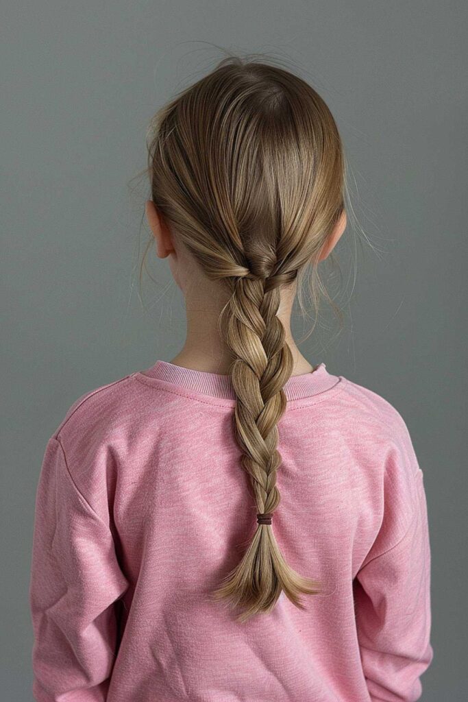 This three‑strand braid is perfect for little girls with medium to long hair, offering a timeless and practical style for school days. The braid keeps hair neatly in place, reducing tangles and making it easy to manage throughout the day.