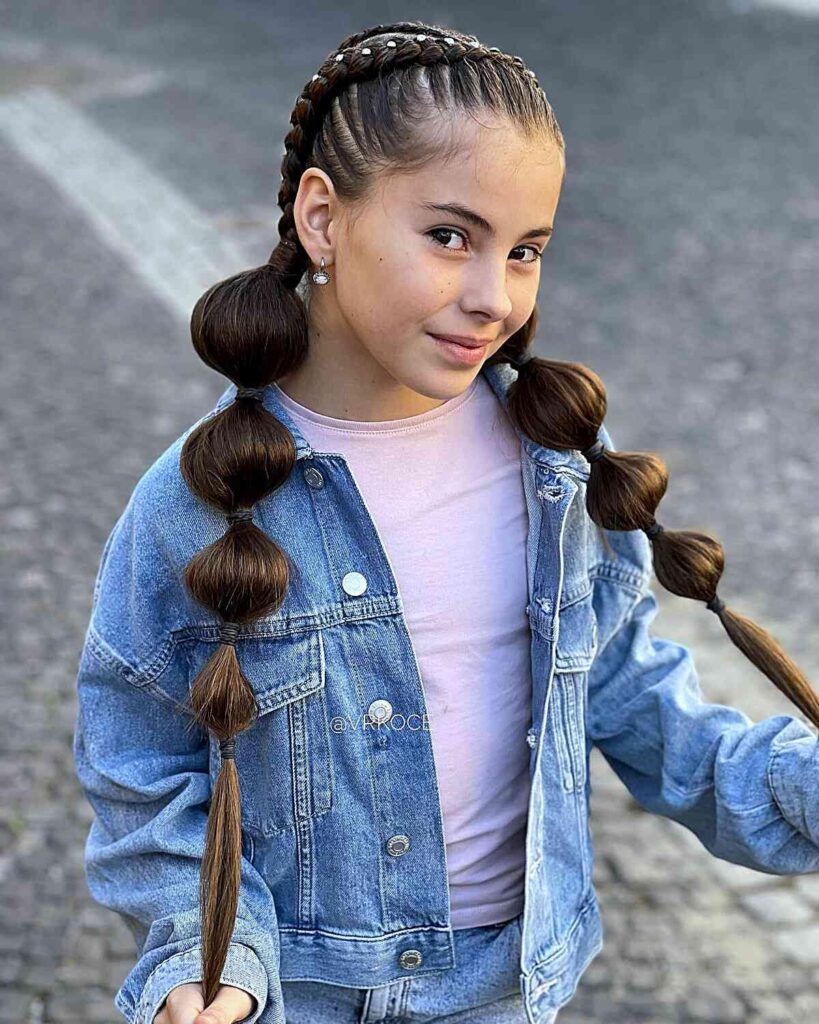 Upgrade your pigtail style with this new twist suitable for little girls. Combine tight Dutch scalp braids with the trending bubble braid style. Scalp braids require some practice.