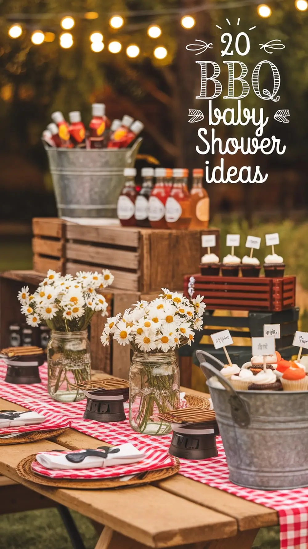 If you’re celebrating a baby girl, switch up the typical red color palette for soft pink gingham. Add fresh flowers like daisies or sunflowers to give it a sweet, feminine feel. It’s a fun way to keep the BBQ vibe while making it girly and pretty.
