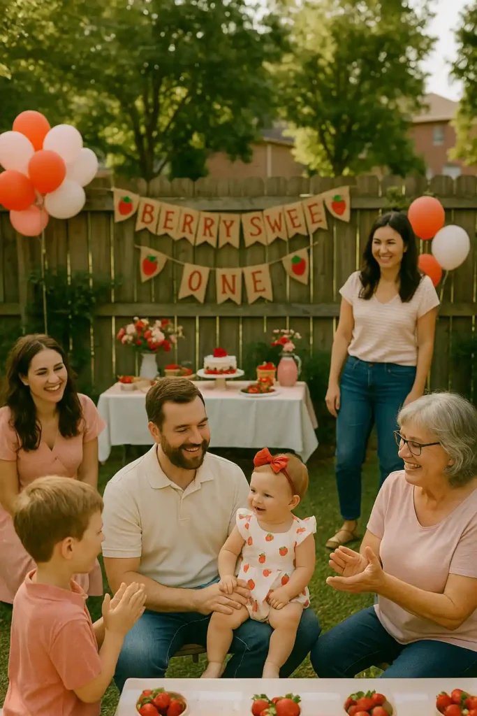The soft reds, pinks, and greens, the tiny strawberries, and the cozy vibe made it feel like the perfect theme for my baby’s big day. And honestly, it turned out to be one of the most heartwarming experiences we’ve ever had as a family.