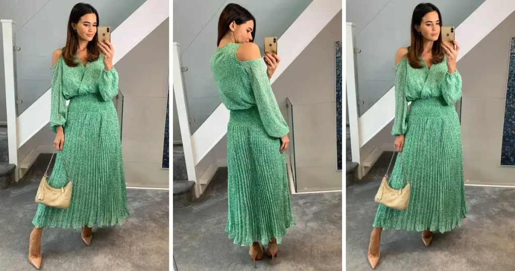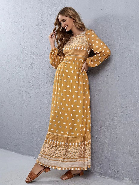 These designs bring just the right mix of elegance and ease, making them ideal for parties, dinners, or baby shower celebrations. Pair your dress with heels or stylish flats and a simple clutch for a polished, glowing look.