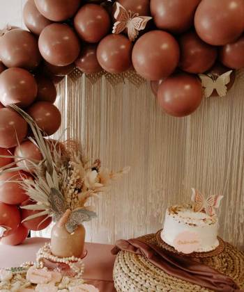 Who says a butterfly baby shower has to be filled with soft pastels or bright pops of color? A bohemian butterfly theme brings a relaxed, earthy vibe that feels both modern and magical. Think natural tones, woven textures, and gentle butterfly accents that make the whole setup breathtaking.