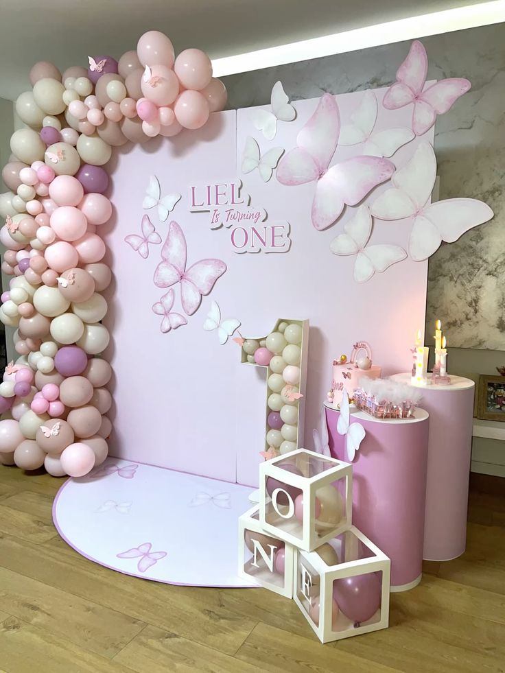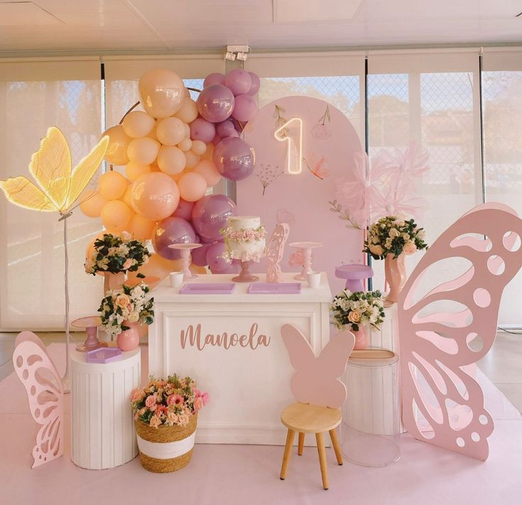 Small chairs and props designed for the birthday baby add warmth to the setup. Butterfly-shaped cutouts or stools fit the theme nicely. I have noticed these pieces are great for photos and short breaks. They make the space feel welcoming and complete.