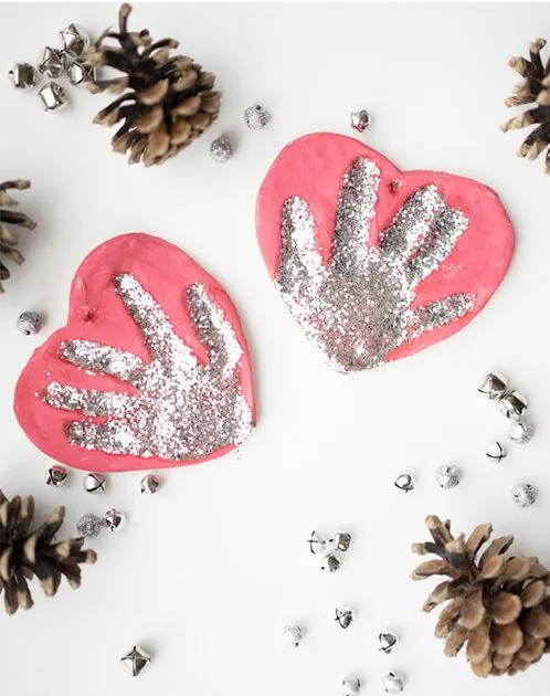 Salt dough ornaments are a Christmas classic that never go out of style. Mix flour, salt, and water to form a soft dough, then roll it out and help the kids press their handprints into it.