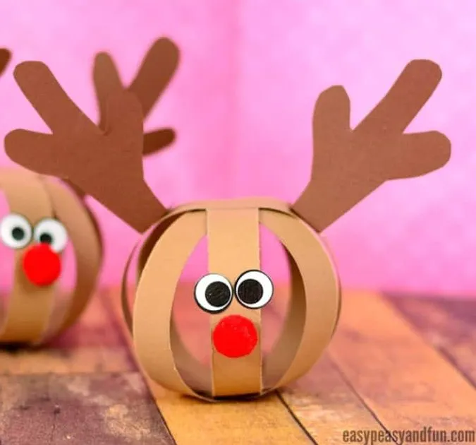 This adorable reindeer craft uses simple strips of paper to make a 3D effect. Cut several strips of brown paper, then help kids loop and glue them into a ball shape. Add paper ears, googly eyes, and a bright red nose to complete Rudolph’s look. You can even add a string at the top to hang it as a decoration. It’s quick to make, fun to customize, and gives children a great sense of accomplishment when they see their reindeer come to life.