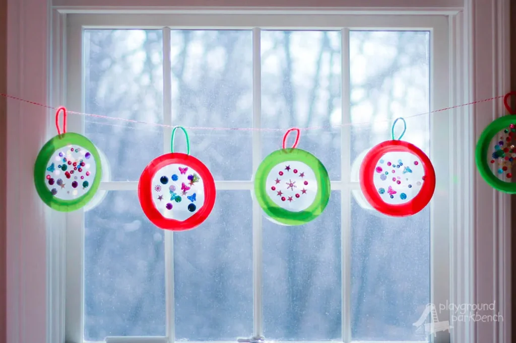 Combine creativity and decoration with a beautiful suncatcher ornament banner. Kids can use tissue paper, glue, and clear plastic sheets to make bright, colorful ornaments that catch the light perfectly.