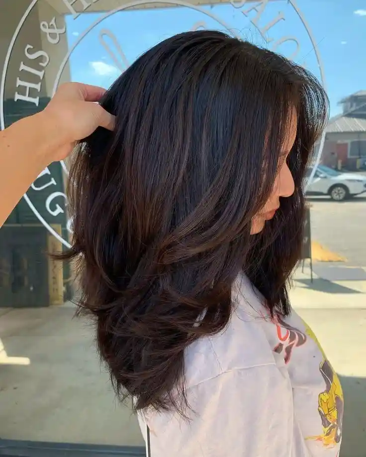 The layers form a gentle C shape that flatters the face and prevents the ends from looking too blunt. It’s the kind of haircut that looks polished with minimal effort, giving your hair a light and airy feel.