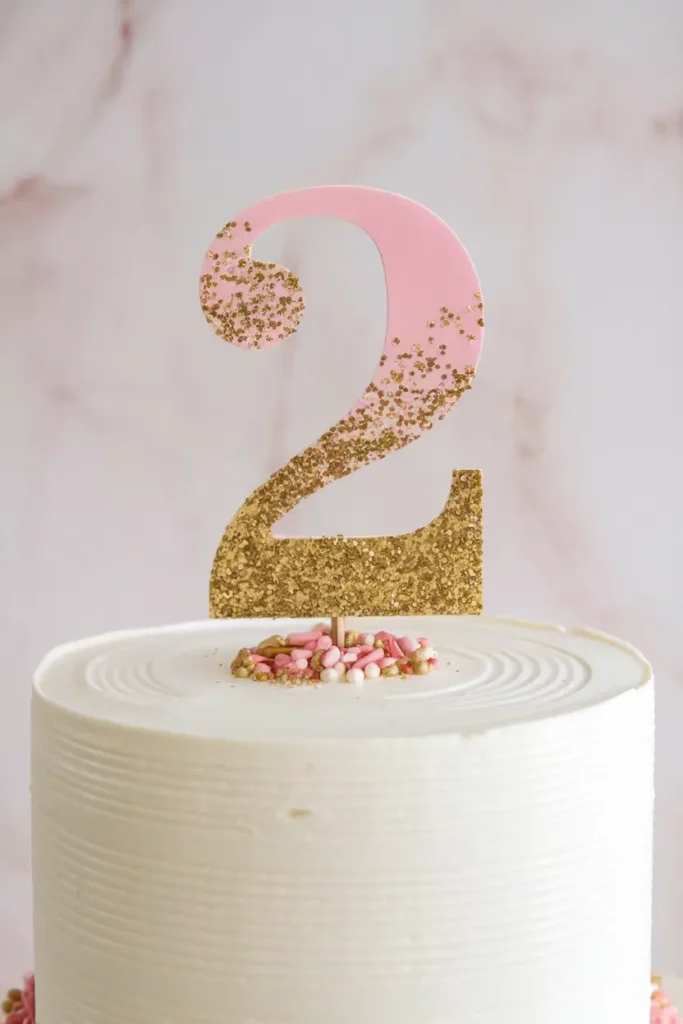 The white buttercream feels classic and polished while still being easy enough for beginner bakers to handle. The glittery number 2 topper really steals the spotlight and adds just the right amount of sparkle for a second birthday.