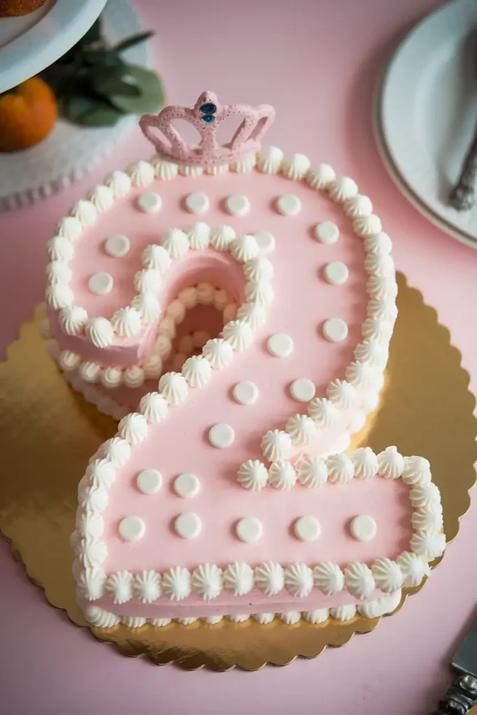 A small tiara or crown placed at the top finishes the look perfectly and leans into the princess theme without feeling overdone. This design really makes a statement and is a great way to celebrate turning two. It is a solid option if you want to try a shaped cake that feels special but is still manageable.