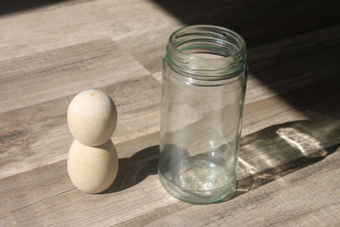 Materials Needed: An object to insert, such as a small ball or wooden egg, and a container like a bowl or pot