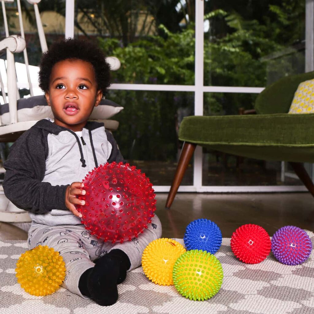 Many little ones go through a phase where they can’t get enough of rolling and throwing balls, but gripping smooth ones can be tricky. The Edushape Sensory Ball is a wonderful solution, thanks to its colorful, nubby texture that’s easy for small hands to hold.