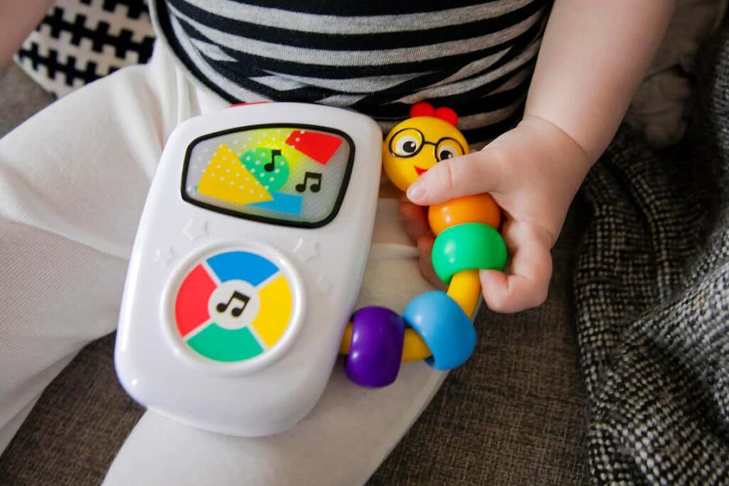 The Baby Einstein Take Along Tunes Musical Toy is a simple but endlessly loved classic. With its easy-to-press button and beaded handle, it’s perfect for little hands to hold and explore. The toy plays short snippets of classical music while colorful lights flash in rhythm.