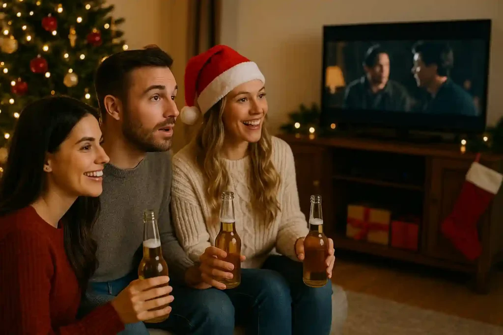 Host an adult-only movie night with a Christmas twist. Choose a favorite holiday movie and decide on a few common words or actions that will trigger everyone to take a sip. For example, you can drink whenever someone says “Santa” or “Christmas,” or whenever someone gives a gift or shares a kiss. It is a lighthearted and funny way to enjoy holiday films together.