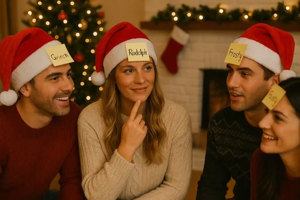 Write down the names of well-known Christmas characters or festive items on sticky notes. Each player sticks a note on another person’s forehead without looking at what it says. Players take turns asking yes or no questions to figure out who or what they are, such as “Am I a movie character?” or “Do I exist in real life?” The first person to guess correctly wins. You can play it as a separate game or mix it into other activities for added fun.
