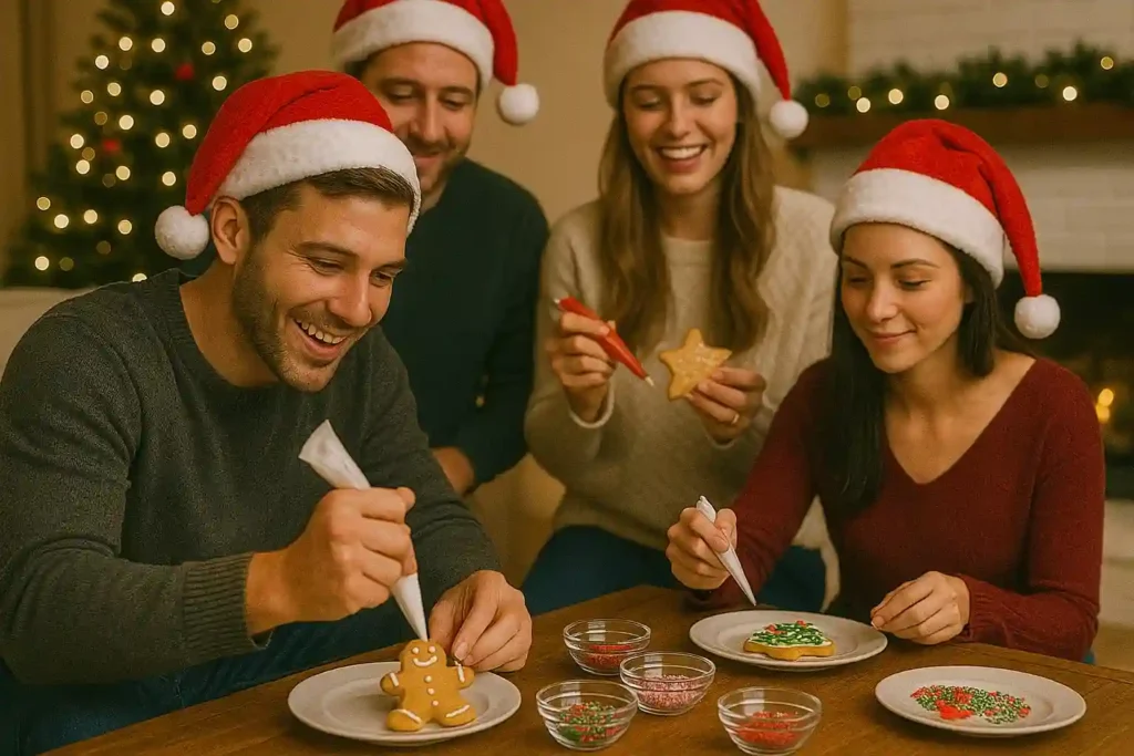 Bring out everyone’s creativity with a cookie decorating competition. Set up a table with sugar cookies, frosting, sprinkles, and candies, then let guests design their masterpieces. You can set a theme like Winter Wonderland or Santa’s Workshop, or challenge everyone to recreate a specific design. For a fun twist, choose a winner for categories such as Most Creative, Funniest Design, or Best Overall.