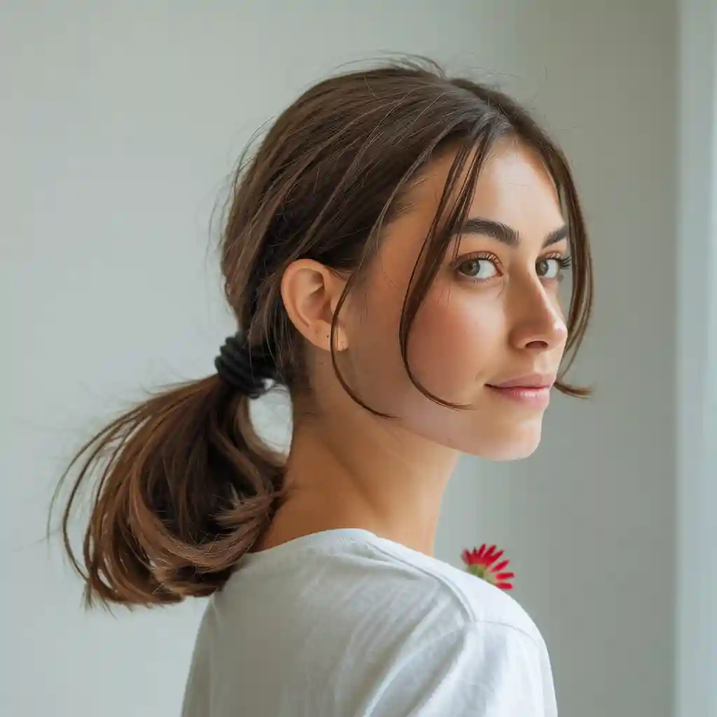 A casual style that holds strong. Start with a low ponytail and braid it down to the ends. Loosen a few strands for a soft, effortless look. This hairstyle is low-maintenance and stays stylish all day.