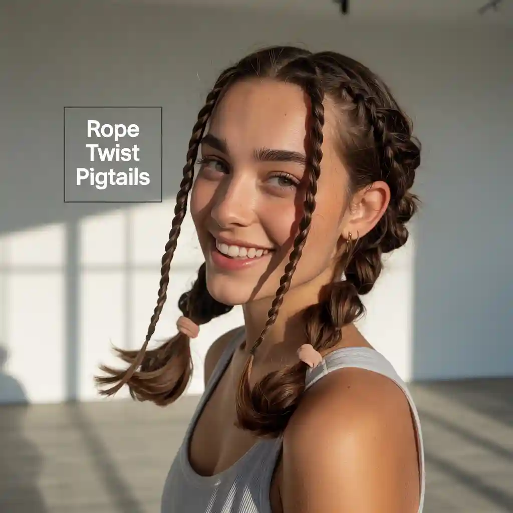 Better grip with a playful touch. Divide your hair in two sections, twist each one tightly, and secure them with elastics. This look is perfect for outdoor activities or casual running and is easier to undo and gentler on your hair than traditional braids.