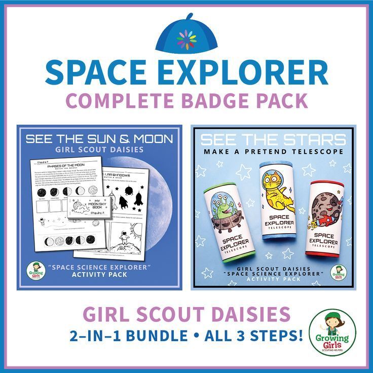 This badge pack lets Girl Scouts discover the wonders of space right from their troop meetings. They can explore the sun, moon, and stars while making pretend telescopes and fun space crafts.
