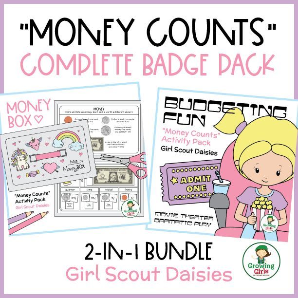 The Money Counts badge pack introduces Girl Scout Daisies to budgeting and saving. The activities, such as creating a money box or pretend shopping, make learning about money exciting and practical.