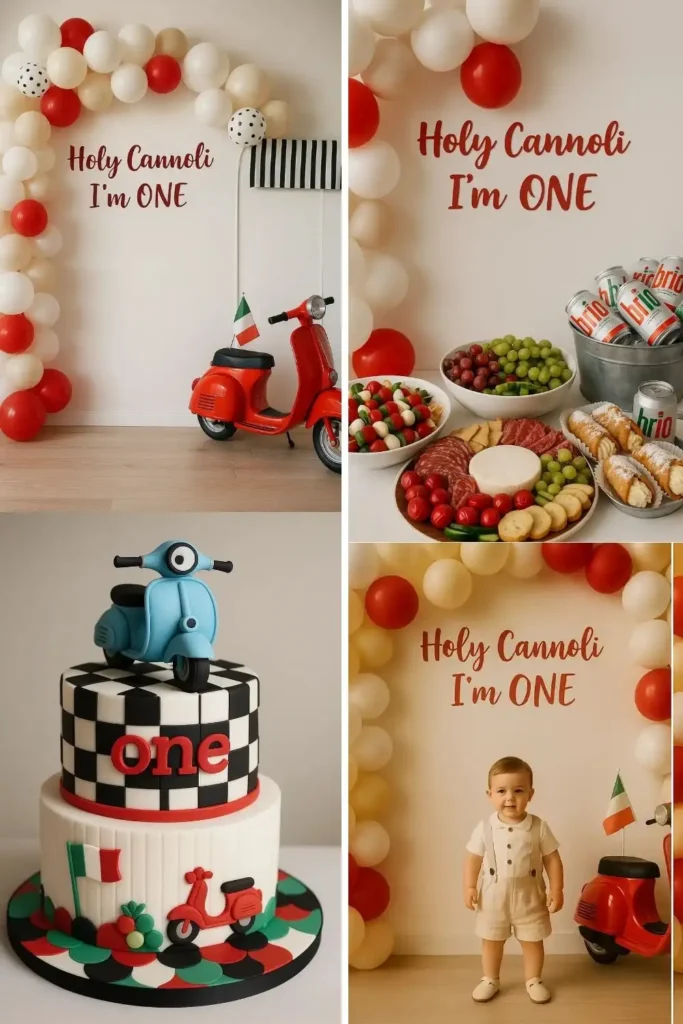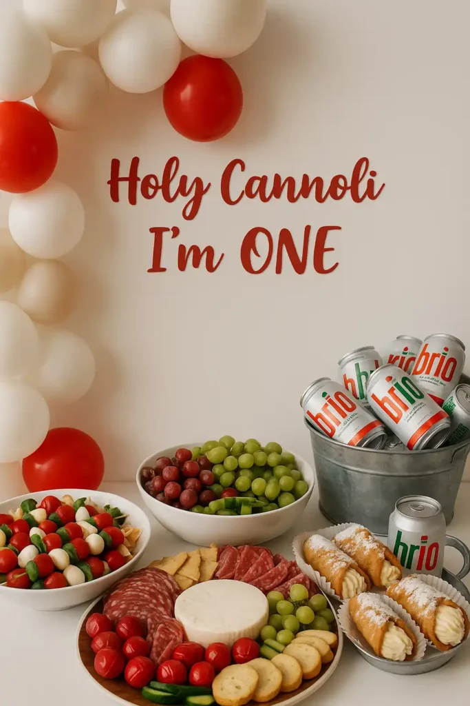 We love Italian food in our house, and the phrase “Holy Cannoli, I’m ONE” just made me laugh the first time I heard it. It was cute, funny, and a little cheeky—perfect for a one-year-old boy who already loves to make people laugh. From that moment, the theme was set.