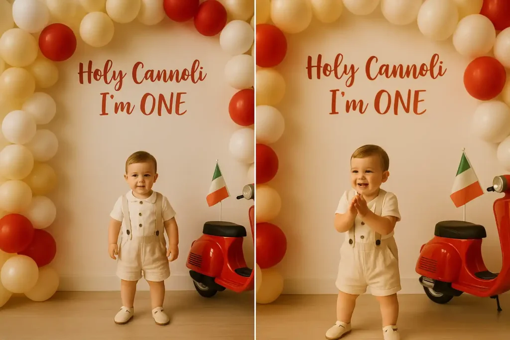 My favorite moment was when he stood in front of the “Holy Cannoli, I’m ONE” backdrop. He looked so proud, as if he knew the whole day was about him. I’ll never forget the joy on his face — that pure happiness made every bit of planning worth it.