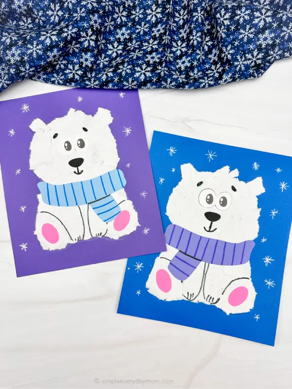 This torn paper polar bear craft is a fun and tactile way to explore texture. Kids can tear white paper into small pieces and layer them to create soft, furry effects that resemble real polar bear fur.