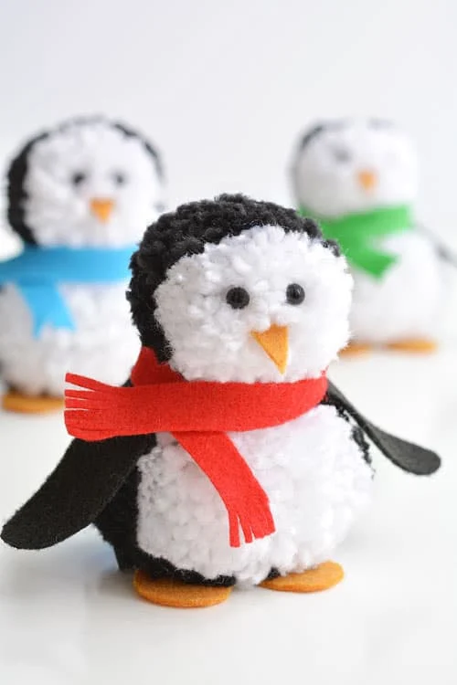 These pom pom penguins are as cute as can be and so easy to make. Using black, white, and orange yarn, kids can create soft, fluffy penguins that are perfect for winter play or decoration.