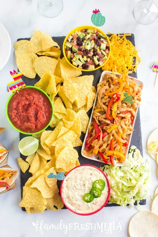 Spice things up with a Cinco de Mayo snack board that’s full of flavor and color. Add nachos, fajitas, tortillas, queso, and salsa. Include lime wedges, guacamole, and a few festive decorations for a Mexican-inspired setup. It’s an easy way to turn snack time into a fiesta everyone will love.