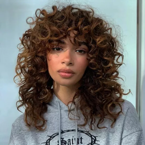 Show off those natural ringlets by keeping the curls around your face a little shorter. Curly bangs make the whole style feel fresh and fun without too much fuss.