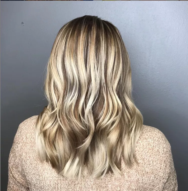 This look has long blond layers that fall around the face in a relaxed way. You can wear it straight for a clean finish or add gentle waves for extra body.