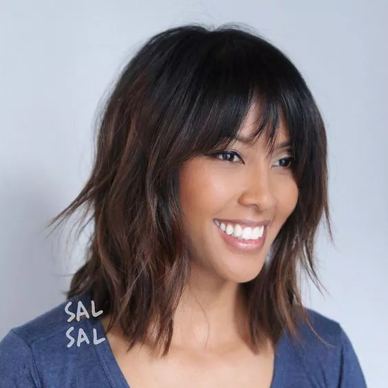 This easy, stylish cut has bangs that sweep just below the brows. It’s perfect if you like a put-together look with minimal effort.