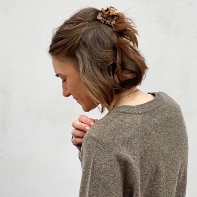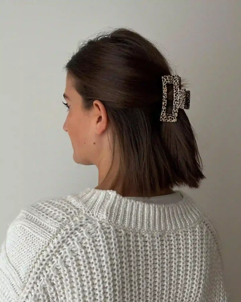 A half-up hairstyle is one of the easiest ways to style short hair with a claw clip. It adds instant lift and keeps your hair out of your face while still showing off your cut.