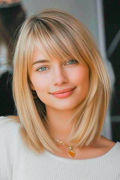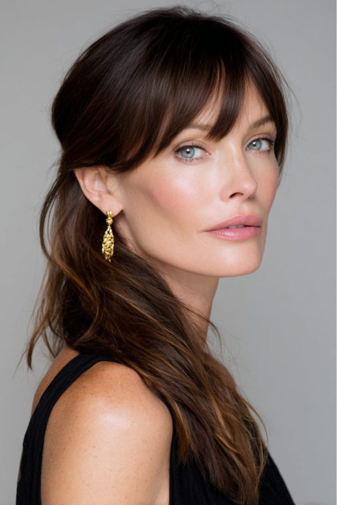 Wispy bangs gently frame the face, softening your features for a casual yet stylish finish. It’s a fun, relaxed refresh that still feels totally wearable.