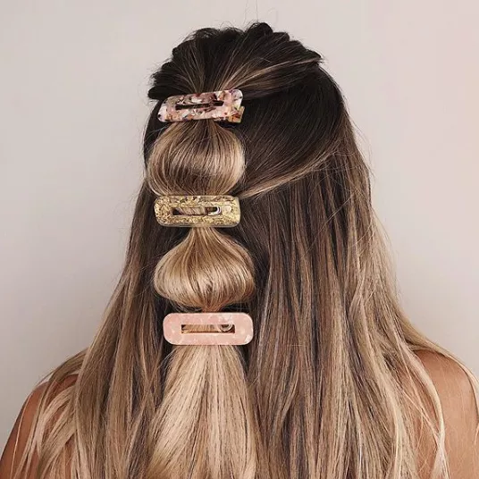 Turn a simple half-up pony into something extra cute. Use clear elastics to create a fun bubble effect along the length of the ponytail. Add a pretty barrette at each section for a playful, polished touch.