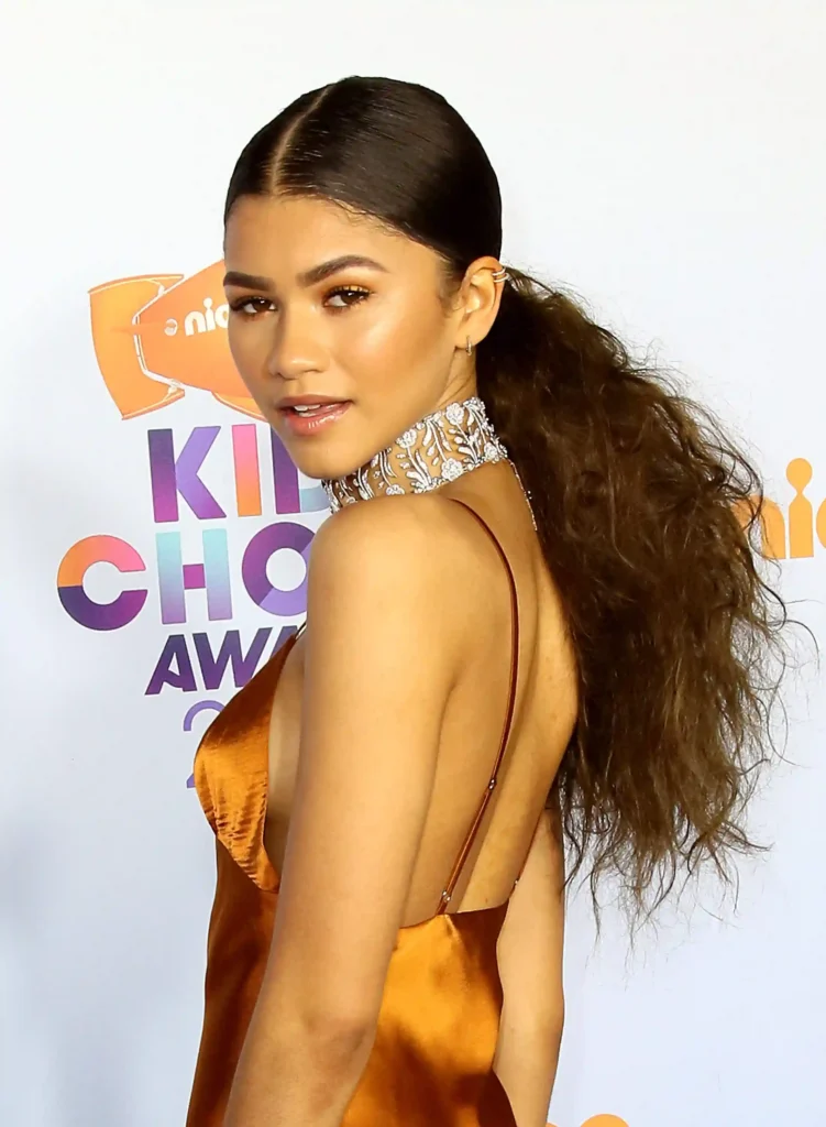 Zendaya is known for rocking her curls with serious flair, and this voluminous low pony is no exception. Part your hair down the middle and smooth it flat before securing a ponytail at the nape of your neck.